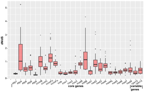 - Adams, K.L.; Qiu, Y.-L.; Stoutemyer, M.; Palmer, J.D. Punctuated evolution of mitochondrial gene content: High and variable rates of mitochondrial gene loss and transfer to the nucleus during angiosperm evolution. Proc. Natl. Acad. Sci. USA 2002, 99, 9905–9912. [Google Scholar] [CrossRef]