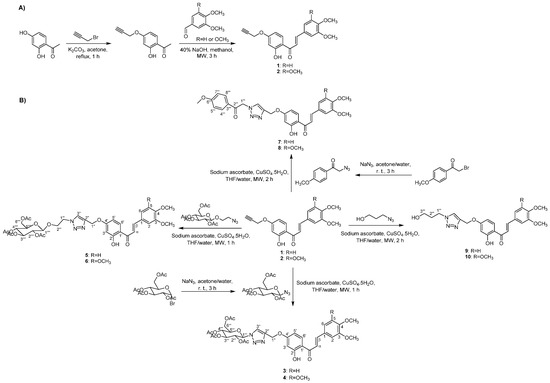 - Pereira, D.; Pinto, M.; Correia-da-Silva, M.; Cidade, H. Recent Advances in Bioactive Flavonoid Hybrids Linked by 1,2,3-Triazole Ring Obtained by Click Chemistry. Molecules 2022, 27, 230. [Google Scholar] [CrossRef]