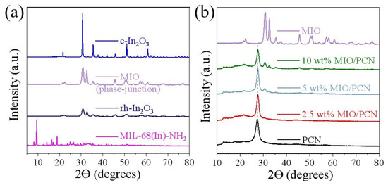 - Han, L.; Jing, F.; Luo, X.; Zhong, Y.-L.; Wang, K.; Zang, S.-H.; Teng, D.-H.; Liu, Y.; Chen, J.; Yang, C.; et al. Environment friendly and remarkably efficient photocatalytic hydrogen evolution based on metal organic framework derived hexagonal/cubic In2O3 phase-junction. Appl. Catal. B Environ. 2021, 282, 119602. [Google Scholar] [CrossRef]