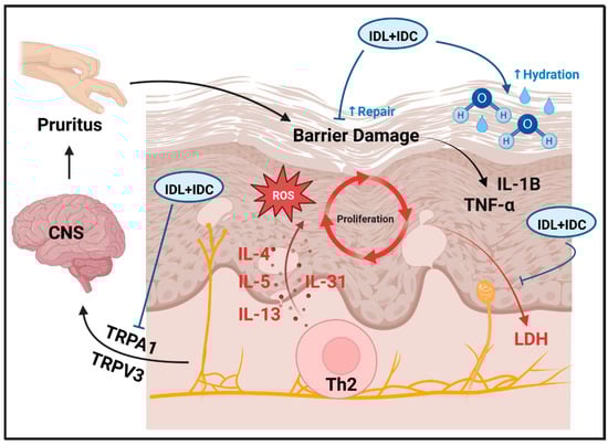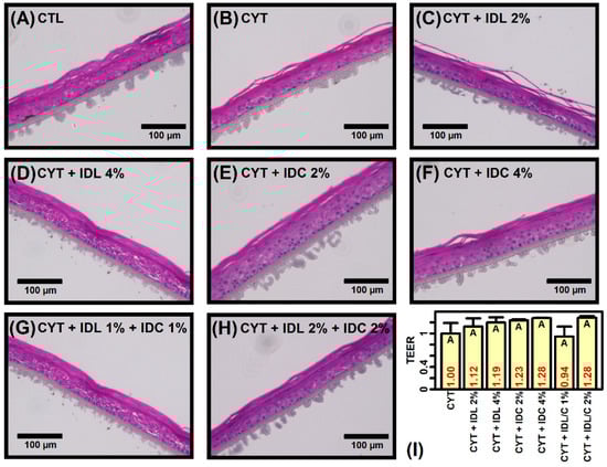 2.1. IDL and IDC Prevent Cytokine-Induced Disruption of Epidermal Morphology