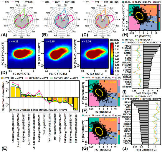 2.7. IDL, IDC and IDL + IDC Oppose Gene Expression Responses Associated with TNF-α but Not Th2 Cytokines (IL-4, IL-13, IL-31)