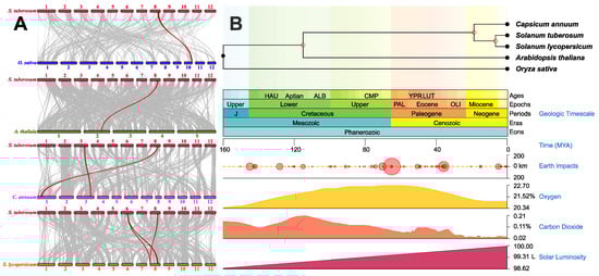 - Wang, Y.; Tang, H.; Debarry, J.D.; Tan, X.; Li, J.; Wang, X.; Lee, T.H.; Jin, H.; Marler, B.; Guo, H.; et al. MCScanX: A toolkit for detection and evolutionary analysis of gene synteny and collinearity. Nucleic Acids Res. 2012, 40, e49. [Google Scholar] [CrossRef]