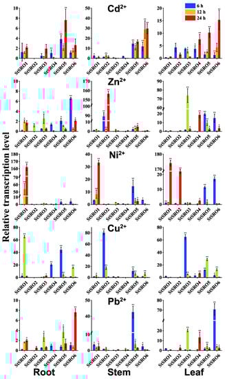 2.5. Expression Profile of SROs in Different Potato Tissues and Expression Response Analysis of Five Heavy Metals under Stress