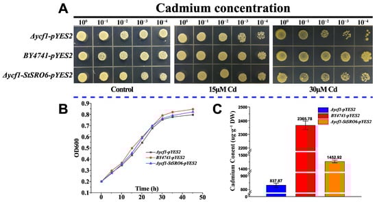 3.3. Potato MEG (StSRO6) Can Restore Cd Tolerance of Δycf1