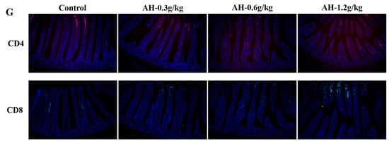 2.3. Influence of Alhagi Honey Polysaccharides on the Secretion Level of Cytokines in Duodenum and the Ratio of CD8+ and CD4+ T Cells in Ileum