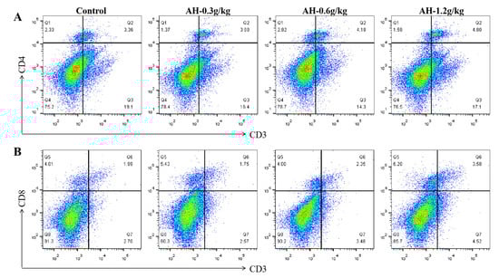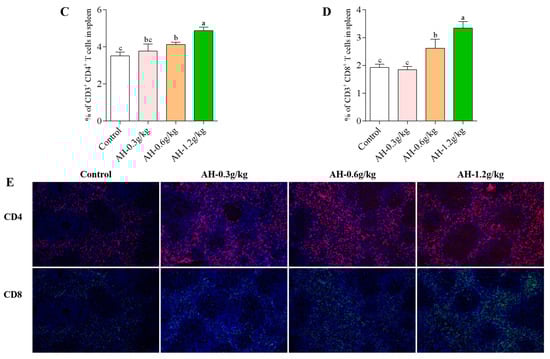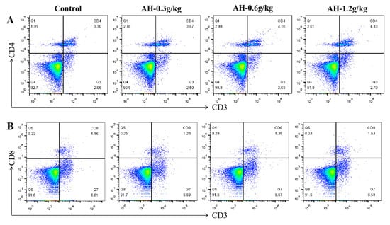 2.8. Influence of Alhagi Honey Polysaccharides on Activation of CD4+ and CD8+ T Cells in Spleen and Peripheral Blood
