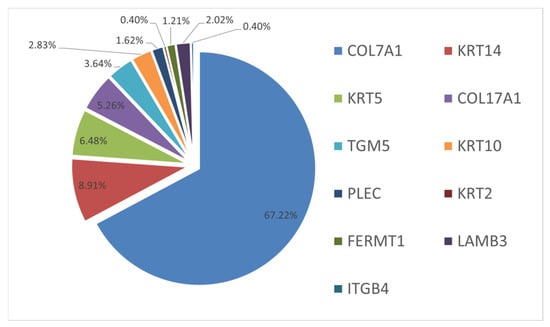 Savostyanov, K.; Murashkin, N.; Pushkov, A.; Zhanin, I.; Suleymanov, E.; Akhkiamova, M.; Shchagina, O.; Balanovska, E.; Epishev, R.; Polyakov, A.; et al. Targeted NGS in Diagnostics of Genodermatosis Characterized by the Epidermolysis Bullosa Symptom Complex in 268 Russian Children. Int. J. Mol. Sci. 2022, 23, 14343. https://doi.org/10.3390/ijms232214343
