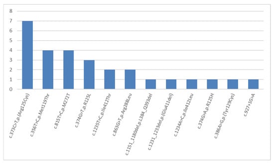| Patient’s ID | Sex | Genome Position (GRCh38) | Gene | Transcript ID | cDNA Variant | Protein Variant | Zygosity | Minor Allele Frequency ** | Inheritance *** |