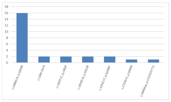 | 8.2 | 1 | 3 | c.3577del | 7 | 4 | 7 | |