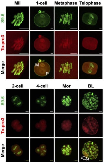 2.2. R-Loops Are Detected throughout Preimplantation Stage Embryos and All Cell Cycles