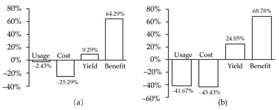 Transgenic technology overcomes the hybridization barriers, utilizes a broader and more diverse range of desirable genes from genetically distant species, and provides a direct and directional approach to improve crops for biotic resistance in a careful target manner with minimal effect on beneficial soil microbes and environment [,,]. It is praised as a second Green Revolution, hopeful for improving biotic resistance and other agronomical characteristics of crops and making a great contribution to food security [,]. Transgenic cultivars of crops are generated by the cloning of desirable genes, construction of expression vectors, genetic transformation of recipient cultivars, and identification of transgenic lines, so as to improve the original undesirable traits or endow them with new beneficial traits [,,]. Transgenic technology is also used to modify or knock out some suboptimal genes to change their undesirable phenotypes [,,,]. After a strict assessment for food and environmental safety, transgenic cultivars with significant improvement in biotic resistance and other agronomical characteristics are authorized for cultivation and market []. According to the survey carried out by the International Service for the Acquisition of Agri-Biotech Applications (ISAAA, http://www.isaaa.org/gmapprovaldatabase/default.asp, accessed on 22 September 2022), 292 transgenic events and hundreds of varieties and hybrids between them of 32 cereals, vegetables, fruits, fibers, oils, trees, and forage crops have been authorized for cultivation and market, cultivated for 176.85 million hectares in more than thirty countries, and providing great profitability by increasing yield and reducing input in pesticides, labor, and machinery. They are harmless to humans, environmentally friendly, and favored by farmers worldwide [,,]. A meta-analysis shows that the application of herbicide-resistant and insecticidal transgenic crops reduces the use of synthetic herbicide and pesticides by 2.43% and 41.67%, and their cost by 25.29% and 43.43%, increases the yield of crops by 9.29% and 24.85%, and benefits farmers by 64.29% and 68.78%, respectively (Figure 2) [].