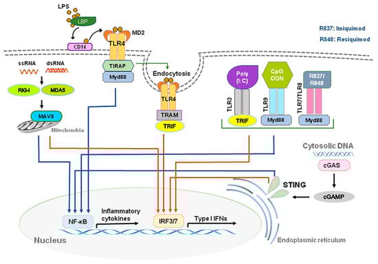 - Fitzgerald, K.A.; Kagan, J.C. Toll-like Receptors and the Control of Immunity. Cell 2020, 180, 1044–1066. [Google Scholar] [CrossRef]