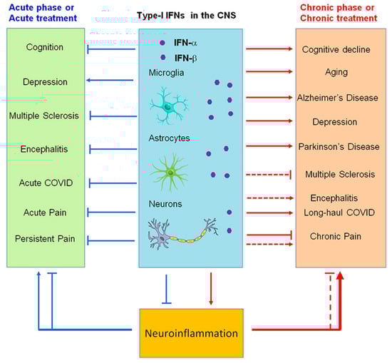 Tan, P.-H.; Ji, J.; Hsing, C.-H.; Tan, R.; Ji, R.-R. Emerging Roles of Type-I Interferons in Neuroinflammation, Neurological Diseases, and Long-Haul COVID. Int. J. Mol. Sci. 2022, 23, 14394. https://doi.org/10.3390/ijms232214394