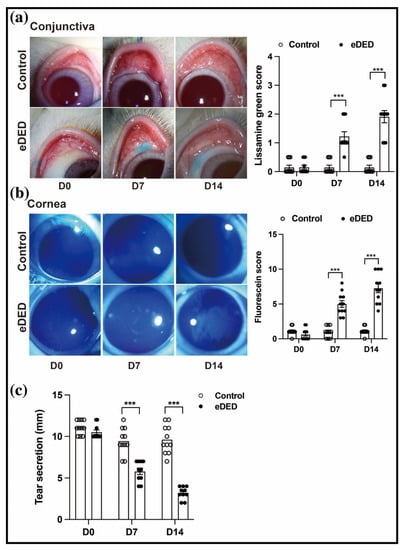 2.1. eDED Has Ocular Surface Injury and Conjunctival Fluid Secretion Dysfunction