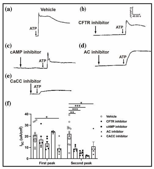 - Son, M.; Ito, Y.; Sato, S.; Ishikawa, T.; Kondo, M.; Nakayama, S.; Shimokata, K.; Kume, H. Apical and basolateral ATP-induced anion secretion in polarized human airway epithelia. Am. J. Respir. Cell Mol. Biol. 2004, 30, 411–419. [Google Scholar] [CrossRef]