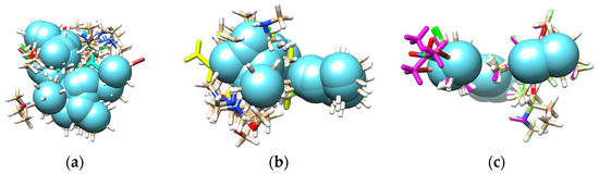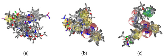 Visualization of results in LigandScout for three groups set1 (a), set2 (b) and set3 (c).