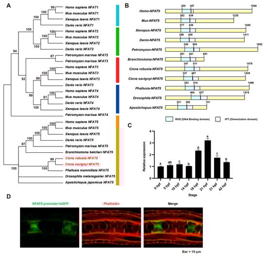 He, M.; Wei, J.; Li, Y.; Dong, B. Nuclear Factor of Activated T Cells-5 Regulates Notochord Lumenogenesis in Chordate Larval Development. Int. J. Mol. Sci. 2022, 23, 14407. https://doi.org/10.3390/ijms232214407