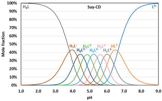 pH-dependent distribution of protonation microspecies of Suγ-CD.