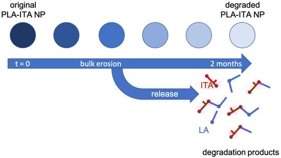 2.4. Degradation Mechanism of PLA-ITA Nanoparticles