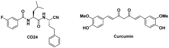 Considering our expertise in drug-combinations [30,31,32], we carried out a combination study of the novel identified lead compound CD24 with curcumin (Figure 1), a multitarget nutraceutical obtained from Curcuma longa L., which we demonstrated to inhibit rhodesain in a non-competitive manner [31].