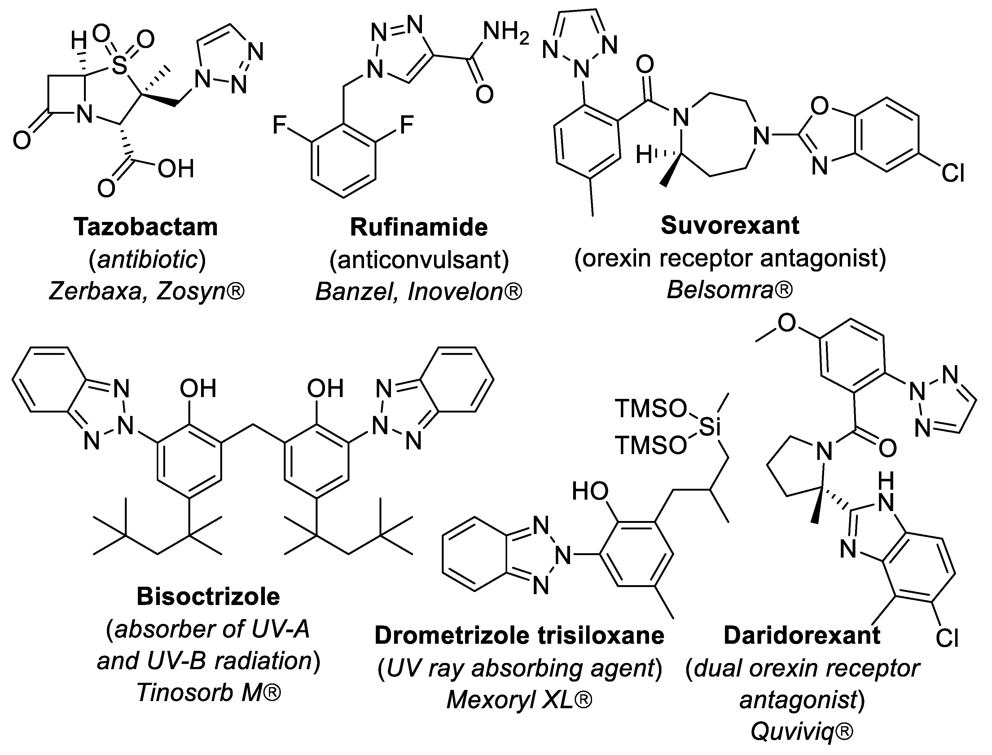 - Serafini, M.; Pirali, T.; Tron, G.C. Chapter Three—Click 1,2,3-triazoles in drug discovery and development: From the flask to the clinic? in Applications of Heterocycles in the Design of Drugs and Agricultural Products Edited. In Advances in Heterocyclic Chemistry; Meanwell, N.A., Lolli, M.L., Eds.; Academic Press: Cambridge, MA, USA, 2021; Volume 134, pp. 101–148. [Google Scholar]