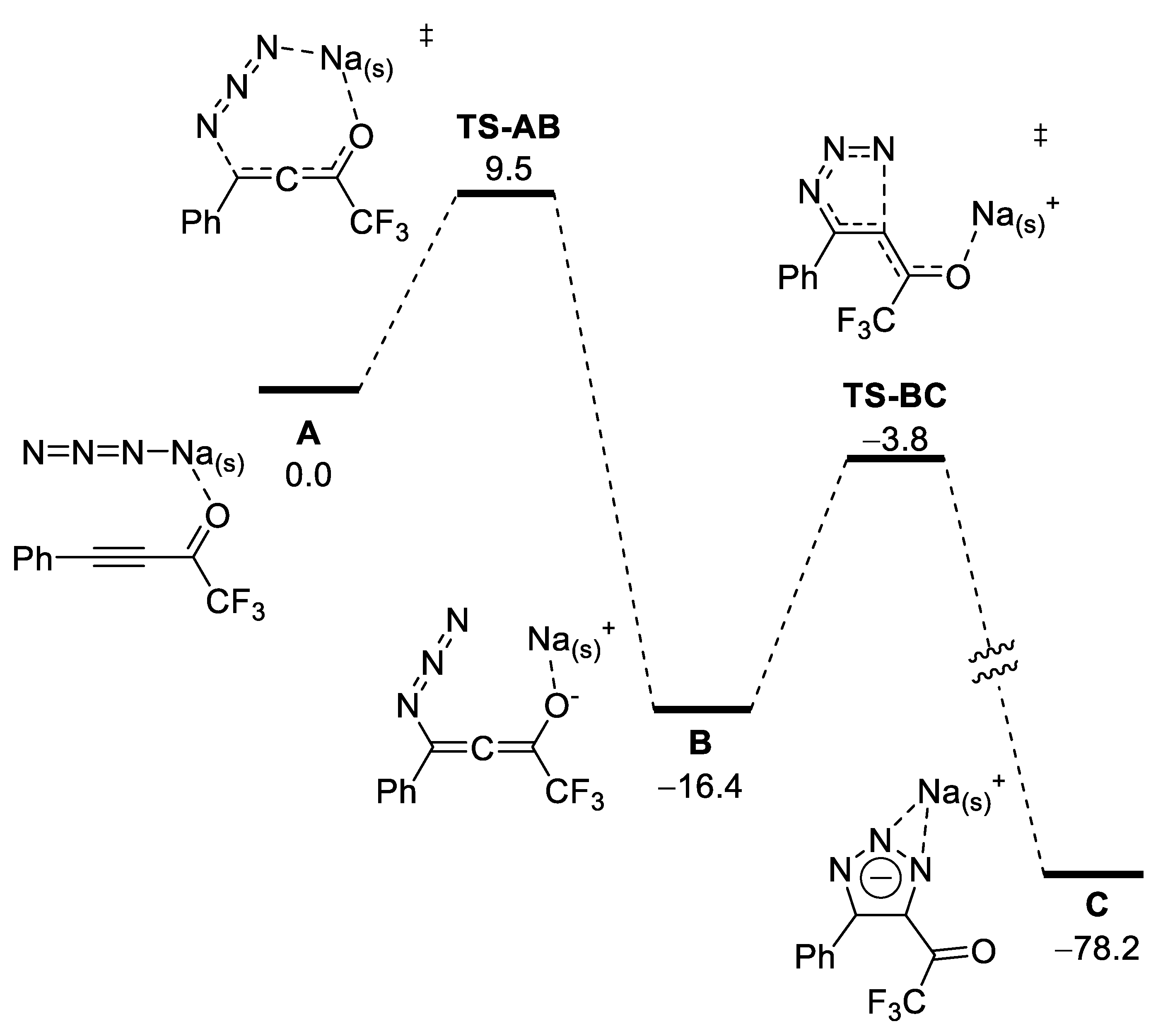 Chicago/Turabian StyleMuzalevskiy, Vasiliy M., Zoia A. Sizova, Mikhail S. Nechaev, and Valentine G. Nenajdenko. 2022. "Acid-Switchable Synthesis of Trifluoromethylated Triazoles and Isoxazoles via Reaction of CF3-Ynones with NaN3: DFT Study of the Reaction Mechanism" International Journal of Molecular Sciences 23, no. 23: 14522. https://doi.org/10.3390/ijms232314522