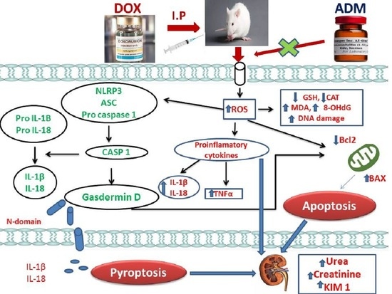 Abd-Ellatif, R.N.; Nasef, N.A.; El-Horany, H.E.-S.; Emam, M.N.; Younis, R.L.; El Gheit, R.E.A.; Elseady, W.; Radwan, D.A.; Hafez, Y.M.; Eissa, A.; et al. Adrenomedullin Mitigates Doxorubicin-Induced Nephrotoxicity in Rats: Role of Oxidative Stress, Inflammation, Apoptosis, and Pyroptosis. Int. J. Mol. Sci. 2022, 23, 14570. https://doi.org/10.3390/ijms232314570