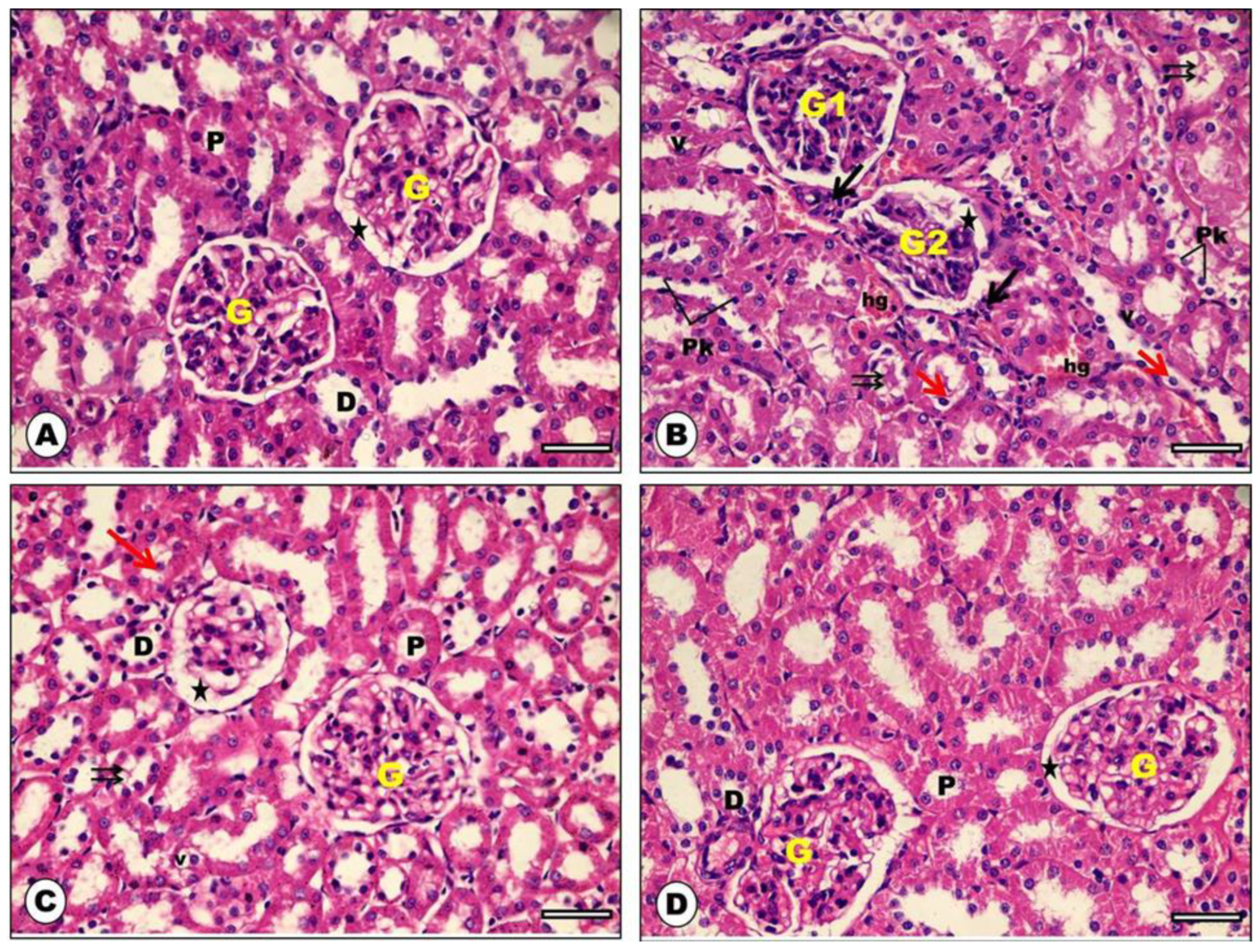 2.5. Effect of ADM on Renal Cortex Histological Features