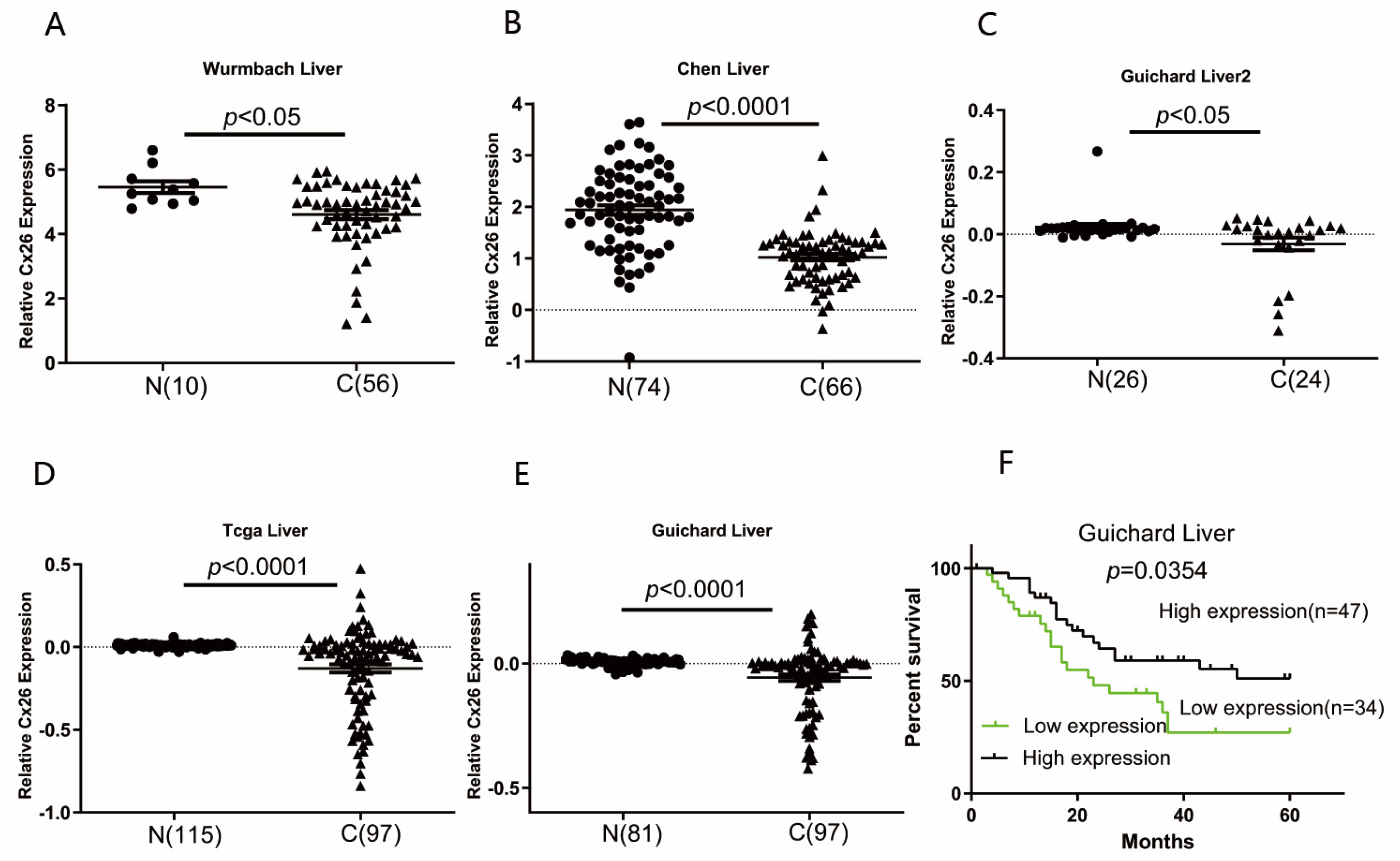 2.1. Expression of Cx26 Differs in Liver Cancer Samples