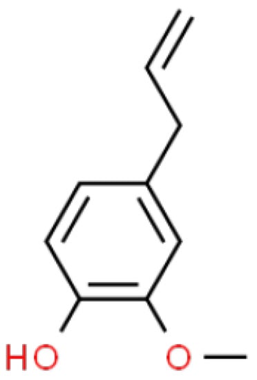 - Sellamuthu, R. Eugenol. In Encyclopedia of Toxicology, 3rd ed.; Wexler, P., Ed.; Academic Press: Cambridge, MA, USA, 2014; pp. 539–541. [Google Scholar]