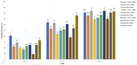 3.1. Eugenol Improves X. perforans Management in Greenhouse and Field Conditions
