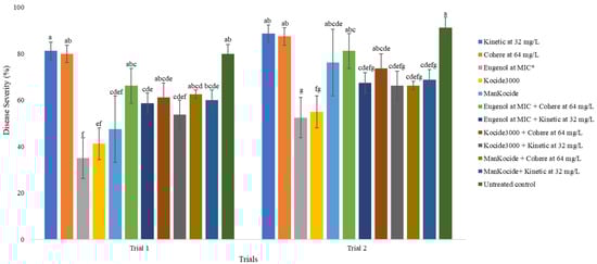 | Kocide3000 | 15.6 b | 136.8 b | 46.3 ab | 475.0 b |
