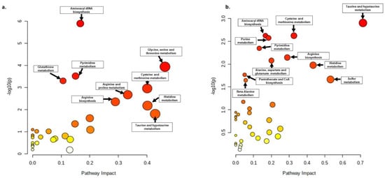 | 5 | Taurine and hypotaurine metabolism | 1.2383 | Taurine (D), Sulfite (D) |