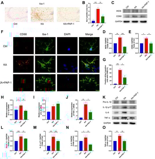 - Vezzani, A.; Conti, M.; De Luigi, A.; Ravizza, T.; Moneta, D.; Marchesi, F.; De Simoni, M.G. Interleukin-1beta immunoreactivity and microglia are enhanced in the rat hippocampus by focal kainate application: Functional evidence for enhancement of electrographic seizures. J. Neurosci. 1999, 19, 5054–5065. [Google Scholar] [CrossRef] [PubMed]