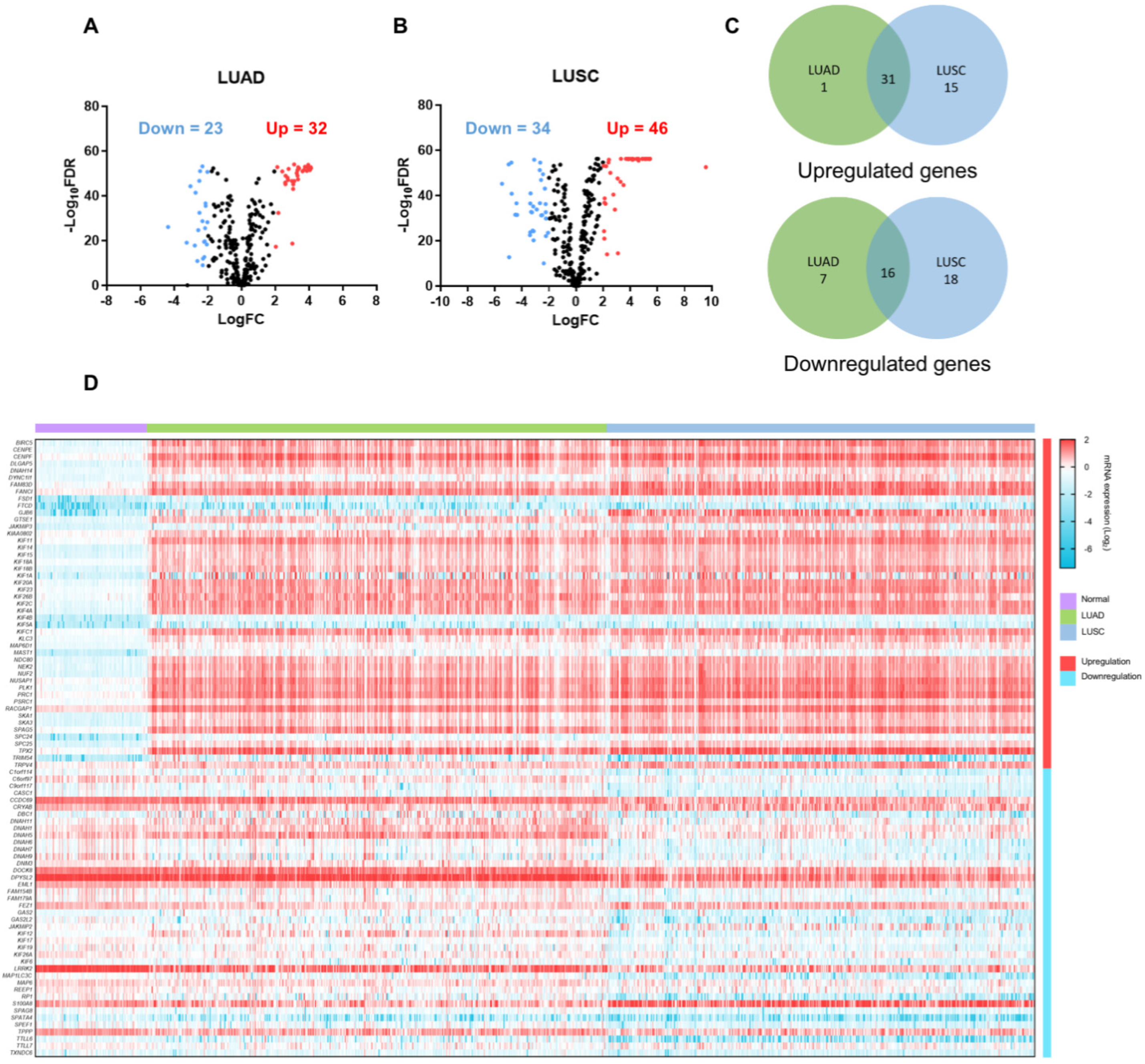 - Li, Y.; Gu, J.; Xu, F.; Zhu, Q.; Ge, D.; Lu, C. Transcriptomic and functional network features of lung squamous cell carcinoma through integrative analysis of GEO and TCGA data. Sci. Rep. 2018, 8, 15834. [Google Scholar] [CrossRef]