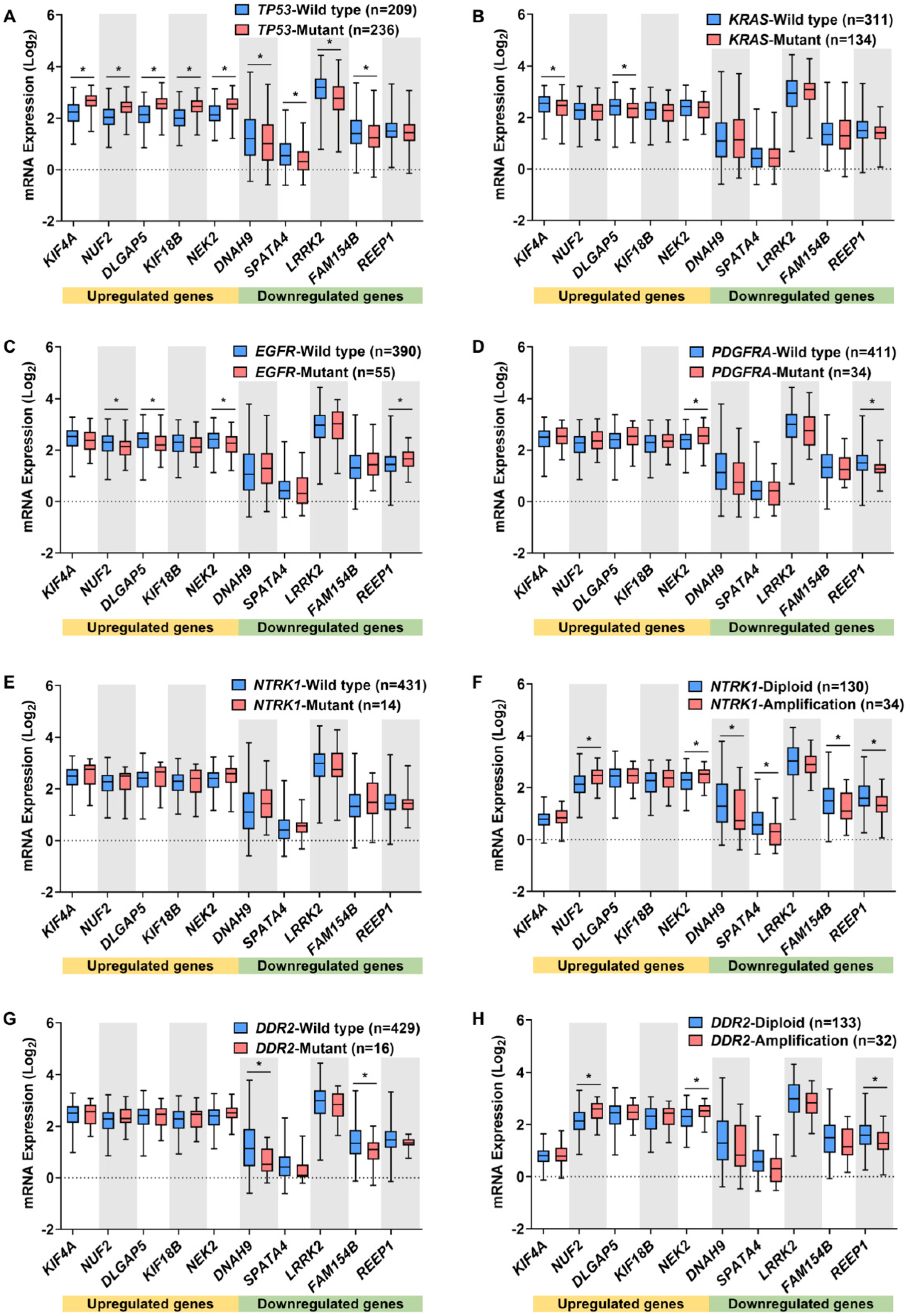 - Chen, C.; Peng, S.; Li, P.; Ma, L.; Gan, X. High expression of NEK2 promotes lung cancer progression and drug resistance and is regulated by mutant EGFR. Mol. Cell. Biochem. 2020, 475, 15–25. [Google Scholar] [CrossRef] [PubMed]