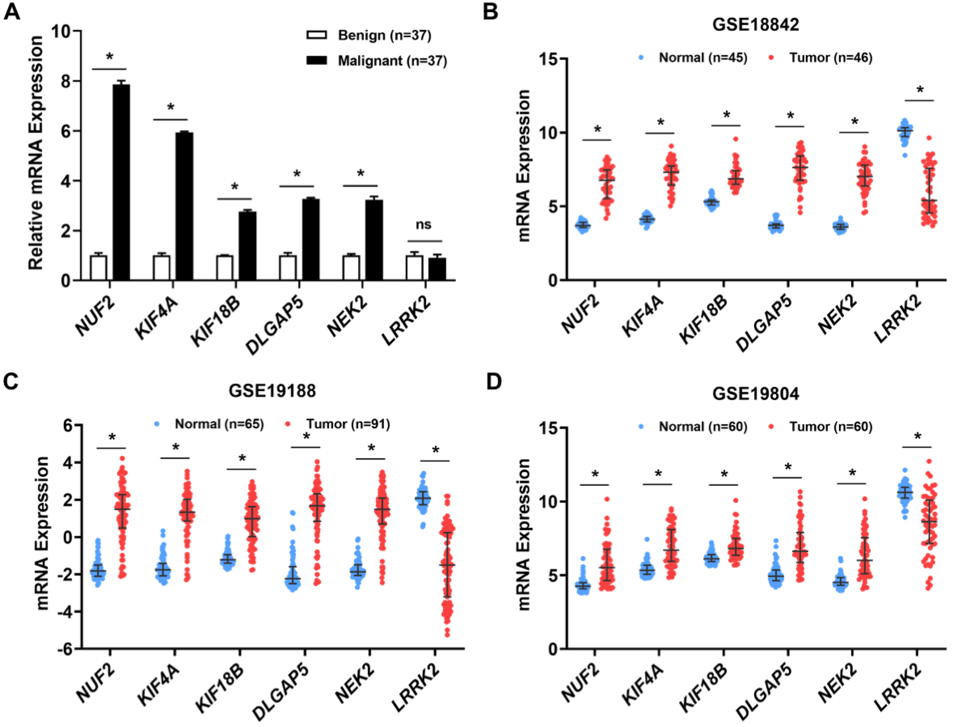 - Li, X.; Zhang, L.; Yi, Z.; Zhou, J.; Song, W.; Zhao, P.; Wu, J.; Song, J.; Ni, Q. NUF2 Is a Potential Immunological and Prognostic Marker for Non-Small-Cell Lung Cancer. J. Immunol. Res. 2022, 2022, 1161931. [Google Scholar] [CrossRef] [PubMed]