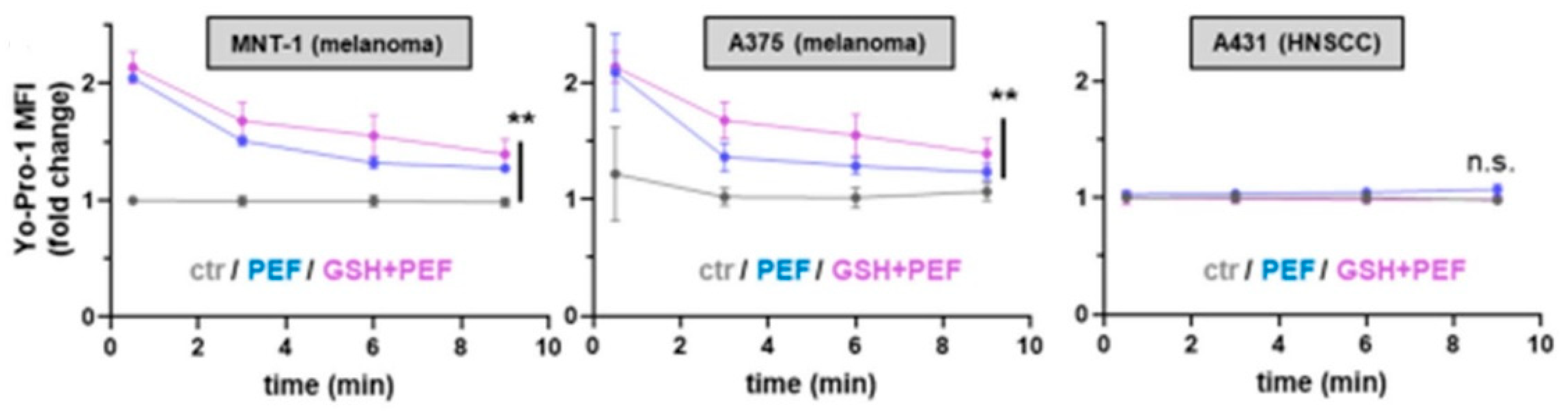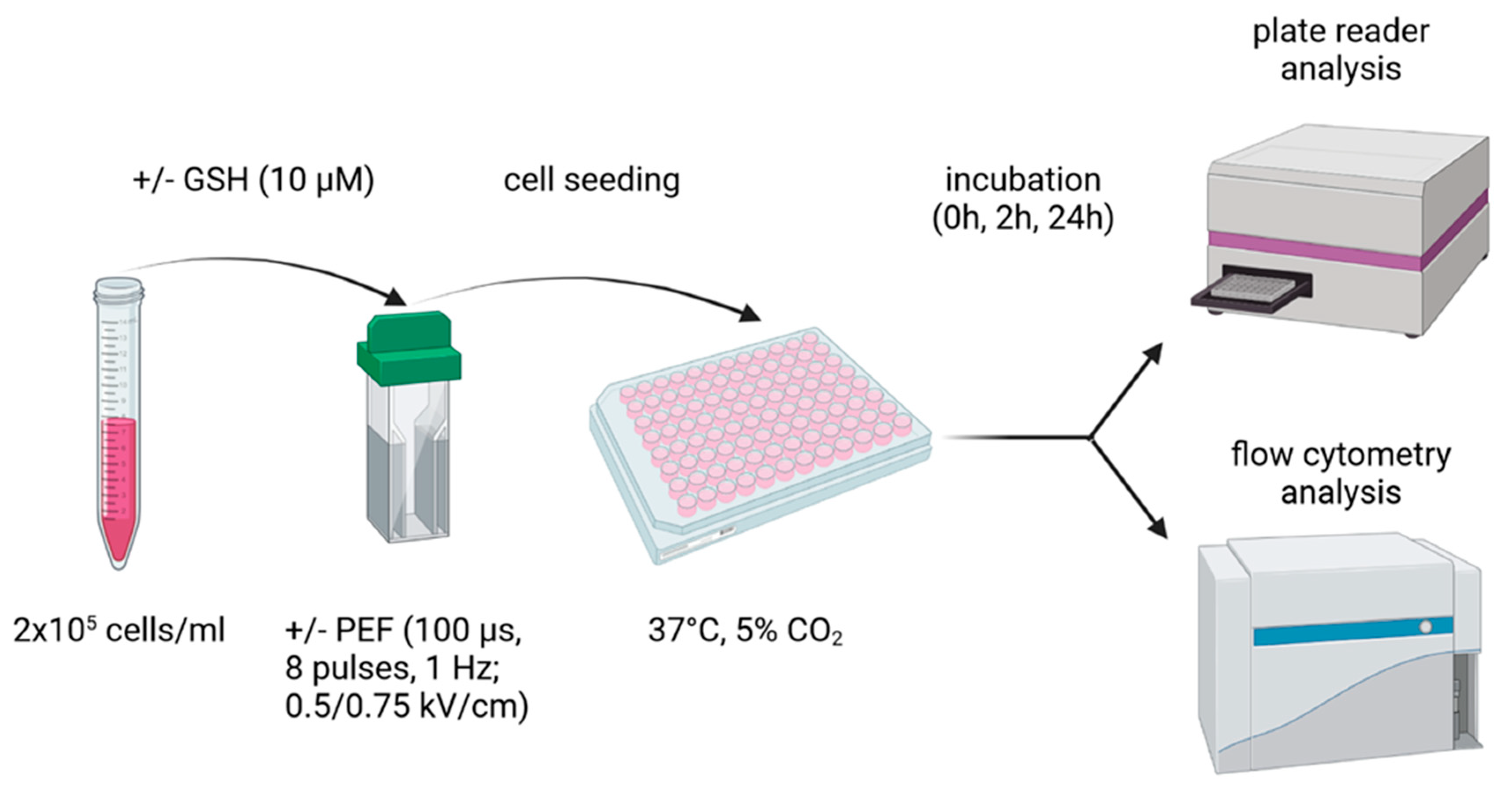 Wolff, C.M.; Bekeschus, S. Synergistic In Vitro Anticancer Toxicity of Pulsed Electric Fields and Glutathione. Int. J. Mol. Sci. 2022, 23, 14772. https://doi.org/10.3390/ijms232314772