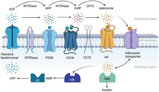 - Zimmermann, H. History of ectonucleotidases and their role in purinergic signaling. Biochem. Pharmacol. 2021, 187, 114322. [Google Scholar] [CrossRef]