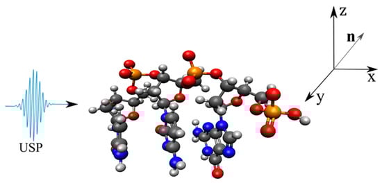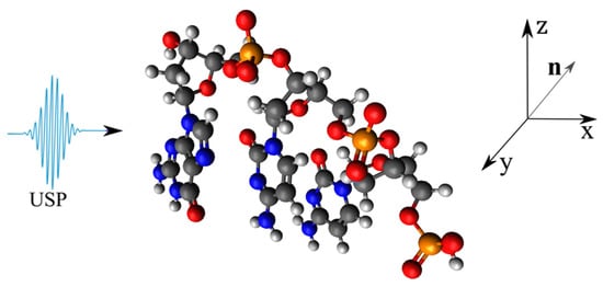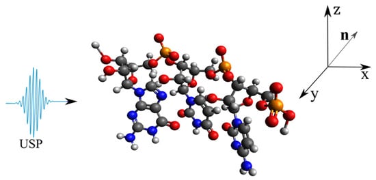Recently, it has been shown in [,,] that there are important cases where the specific scattering of USPs must be accounted for in diffraction analysis; consequently, the use of Equations (1) and (2) results in significant errors. Basically, such errors appear in the scattering of attosecond USPs on certain kinds of structures. Such structures have been shown to include DNA and RNA nucleotides, etc. Thus, it is important to study structures where previously known diffraction analysis theory would give wrong results. By using such erroneous results when “deciphering” structures, it is possible to incorrectly identify the structures of the object under study. An interesting system to study scattering is DNA and RNA molecules. Let us look at some of the trinucleotides in DNA and RNA: CCG, CGG, CAG, CUG. Trinucleotides or triplets are repetitive regions in a molecule. The arrangement of triplets indicates the presence or absence of DNA and RNA mutations []. The mechanism of repeat formation is not fully known, but research in this area is actively pursued [,,,].
