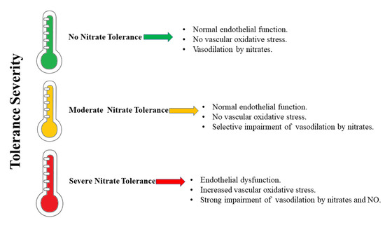 - Daiber, A.; Münzel, T. Organic nitrate therapy, nitrate tolerance and nitrate induced endothelial dysfunction: Emphasis on redox biology and oxidative stress. Antioxid. Redox. Signal. 2015, 23, 899–942. [Google Scholar] [CrossRef] [PubMed]