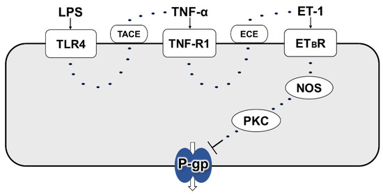 - Bauer, B.; Hartz, A.M.; Miller, D.S. Tumor necrosis factor alpha and endothelin-1 increase P-glycoprotein expression and transport activity at the blood-brain barrier. Mol. Pharm. 2007, 71, 667–675. [Google Scholar] [CrossRef]