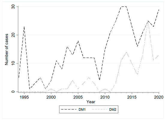 Number of cases diagnosed annually in both DM1 and DM2 patients.