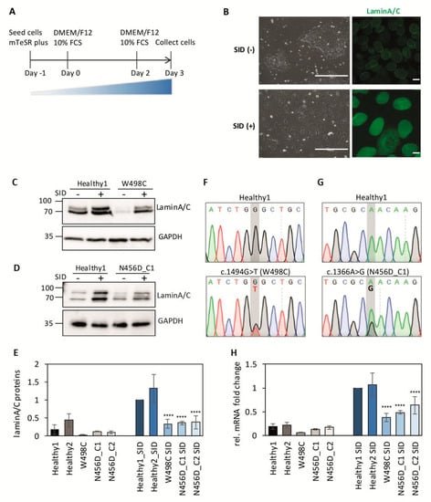 2.3. Impaired Expression of LMNA Co-Regulated Genes after SID in Patient-Derived iPSCs