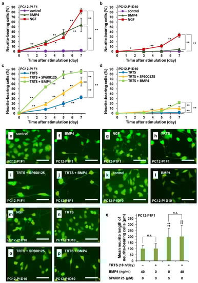- Lönn, P.; Zaia, K.; Israelsson, C.; Althini, S.; Usoskin, D.; Kylberg, A.; Ebendal, T. BMP enhances transcriptional responses to NGF during PC12 cell differentiation. Neurochem. Res. 2005, 30, 753–765. [Google Scholar] [CrossRef]