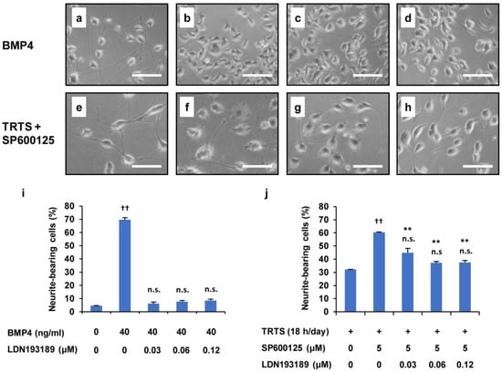 2.6. Suppression of the SP600125-Mediated Promotion of TRTS-Induced Neuritogenesis by U0126 and LDN193189