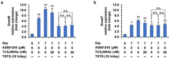 2.7. Effects of TRTS in the Presence or Absence of SP600125 on Gene Expressions