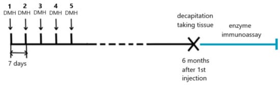 The most adequate to human CRC model of experimental carcinogenesis is 1,2-dymethylhydrazine (DMH)-induced CRC. DMH is a pro-carcinogenic agent that is activated in the liver and transported to the intestine by bile and blood. The mechanism of action of DMH is associated primarily with DNA methylation of the stem colonocytes which are located at the base of the intestinal crypts, with the subsequent development of colon adenocarcinomas [17,18,19]. The majority of colon tumors in the DMH-rats are located in the distal colon, while are less frequent in the proximal colon [17,18,20]. The cause of this preference remains unclear.