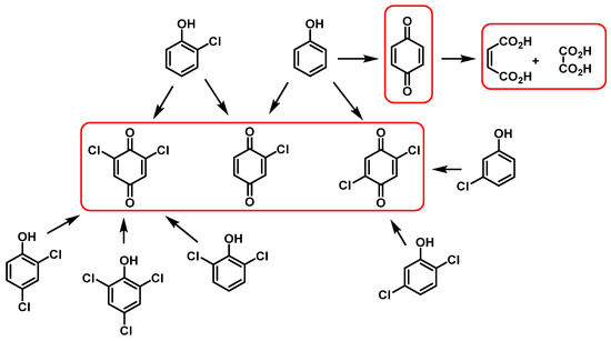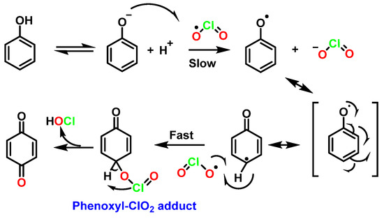 - Wajon, J.E.; Rosenblatt, D.H.; Burrows, E.P. Oxidation of phenol and hydroquinone by chlorine dioxide. Environ. Sci. Technol. 1982, 16, 396–402. [Google Scholar] [CrossRef] [PubMed]