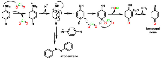 - Rosenblatt, D.; Hull, L.; De Luca, D.; Davis, G.; Weglein, R.; Williams, H. Oxidations of amines. II. Substituent effects in chlorine dioxide oxidations. J. Am. Chem. Soc. 1967, 89, 1158–1163. [Google Scholar] [CrossRef]